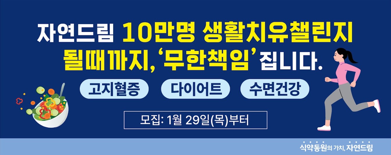 전체삭제자연드림이 1월 29일(목) 부터 <10만명 무한책임 챌린지>를 시작햇습니다.