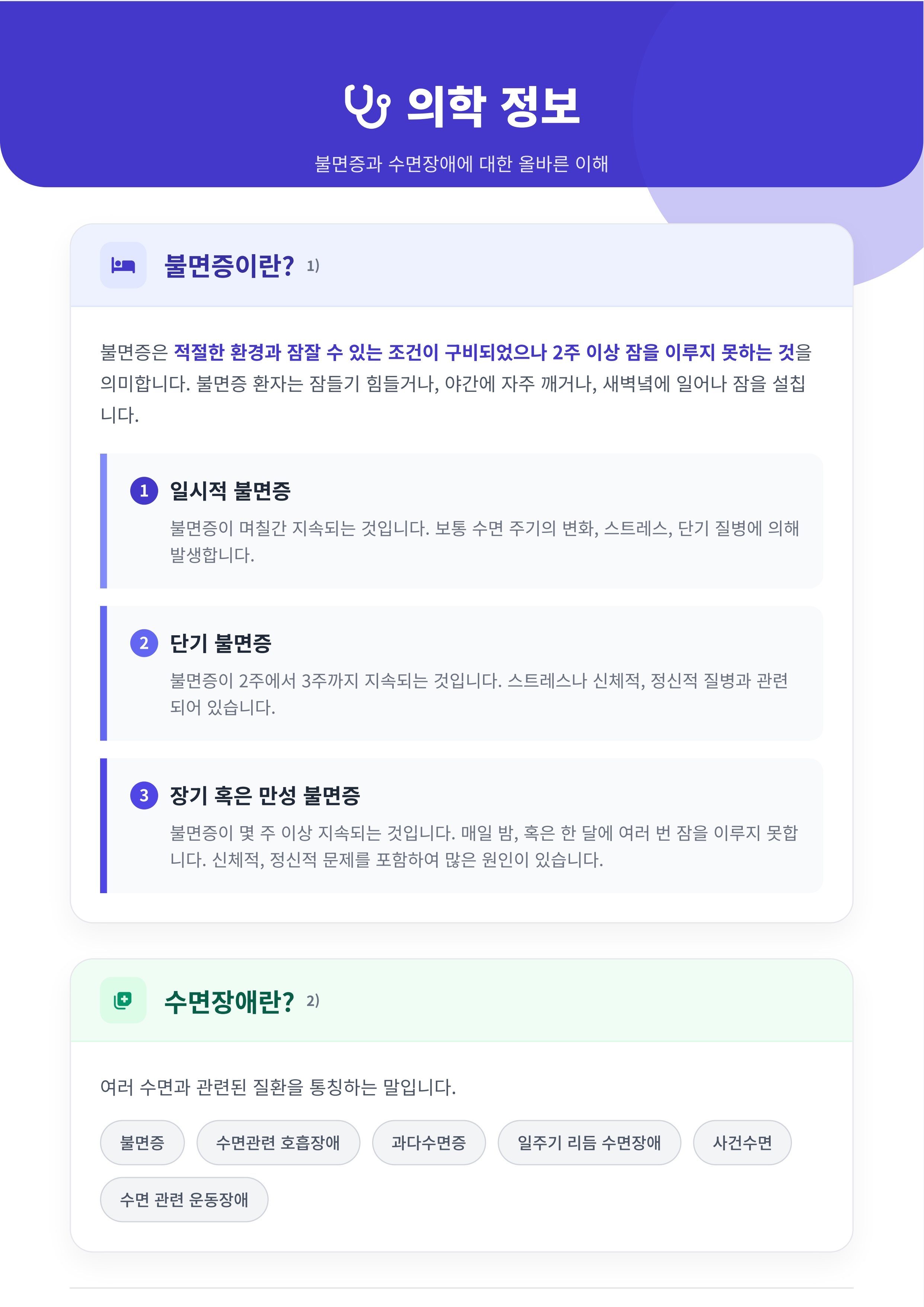 수면 부족과 불규칙한 생활은 피로, 면역력 저하, 만성질환의 원인이 될 수 있습니다.