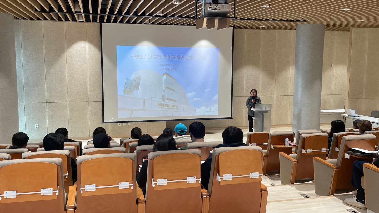 『라이프케어 운동과 항암식품 이해』라는 주제로 2023년 11월 28일(화)에 괴산자연드림파크에 있는 iN항암생활연구소&도서관 라이프케어홀에서 교육이 진행되었다.