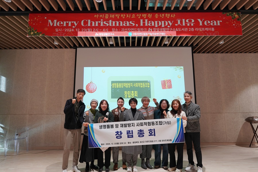 전체삭제12월 23일(월) 괴산자연드림파크 iN항암생활연구소&도서관 라이프케어홀에서 암 환우들을 위한 송년 행사에 앞서 ‘생명돌봄암재발방지 사회적협동조합’ 창립총회가 개최되었다.